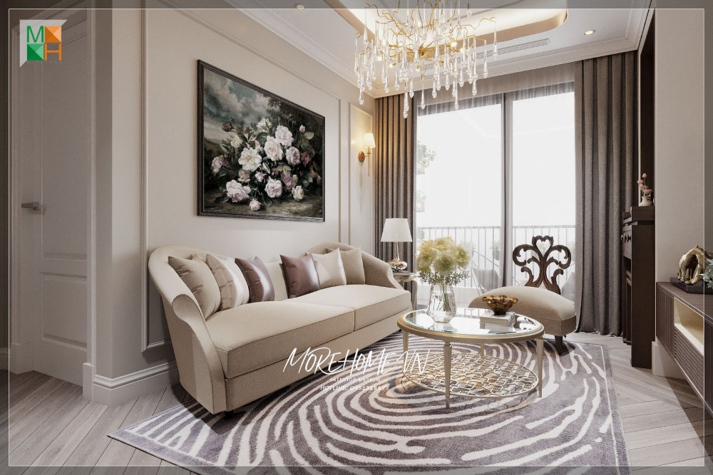 Bộ sofa phòng khách bọc da bò cao cấp được nhập khẩu để trang trí biệt thự tân cổ điển tại Ciputra Tây Hồ Hà Nội.